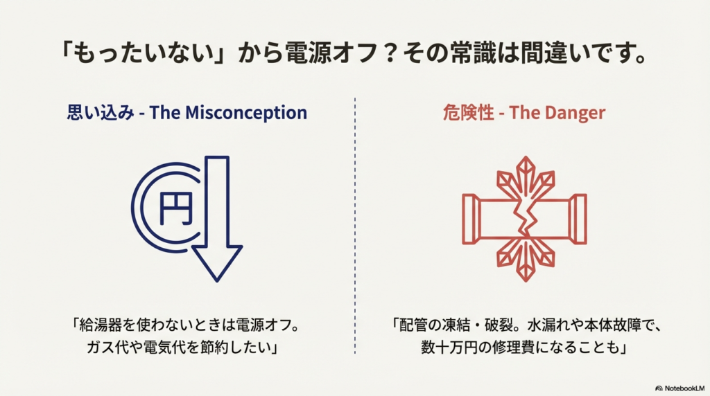 給湯器の電源オフは「危ない」?凍結リスクが高まる理由